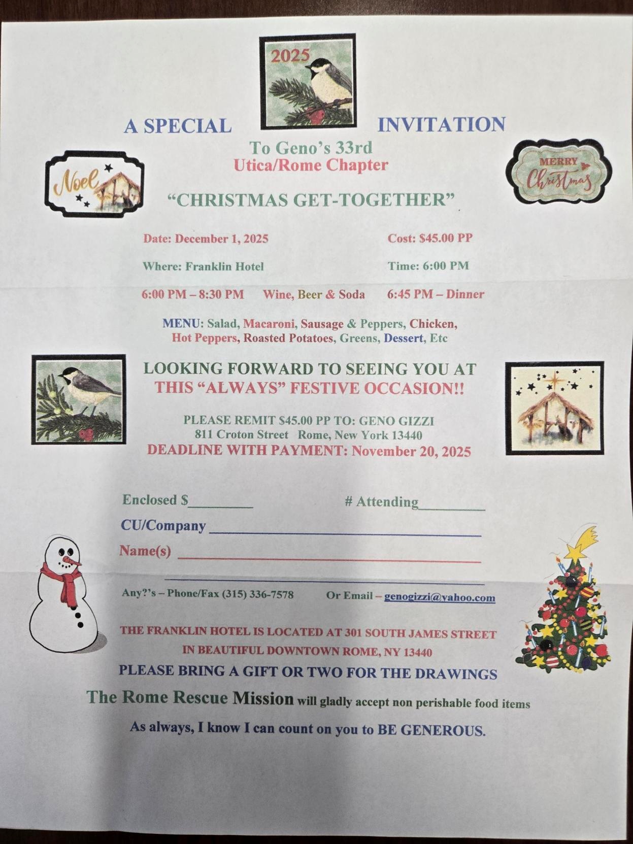 Geno's 33rd Utica-Rome Chapter Christmas Get-Together